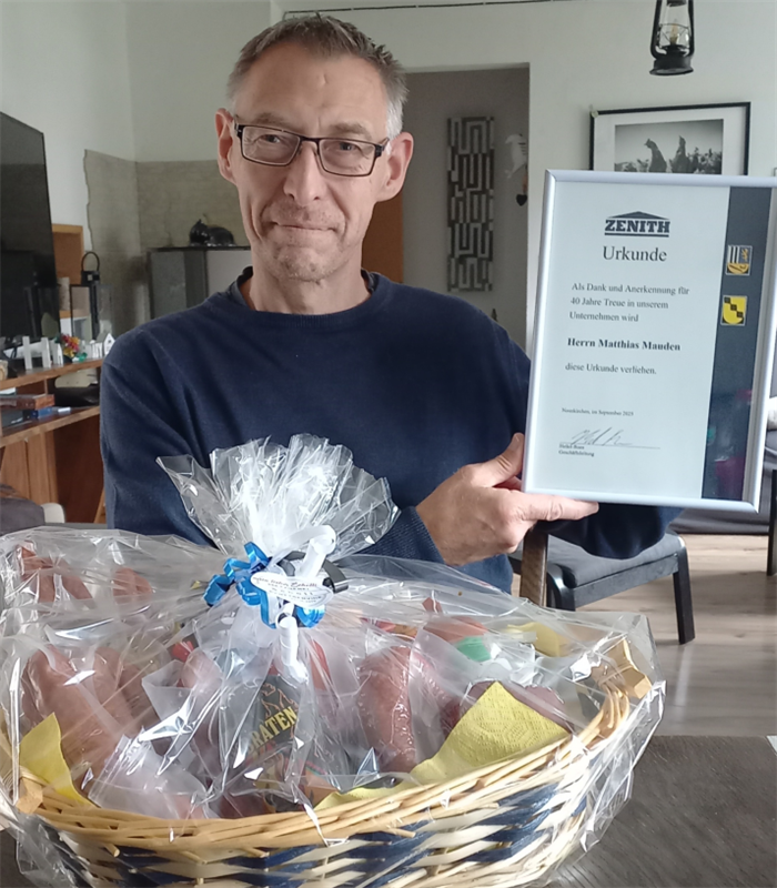 Tá an tUasal Matthias Mauden, 57 bliain d'aois, le Zenith ó chríochnaigh sé clár oiliúna trí bliana d'fheisteoirí meicniúla. Thar na blianta, tá sé ag obair i réimse na hinnealtóireachta hiodrálacha, a bhfuil saineolas domhain i sorcóirí hiodrálacha agus creathadh. Ag an am céanna, d'oibrigh sé go gníomhach mar gharchabhair sa chuideachta, ag cinntiú sábháilteacht a chomhghleacaithe. Chonaic an daichead bliain de thiomantas a thuras iontach fáis taobh le Zenith.