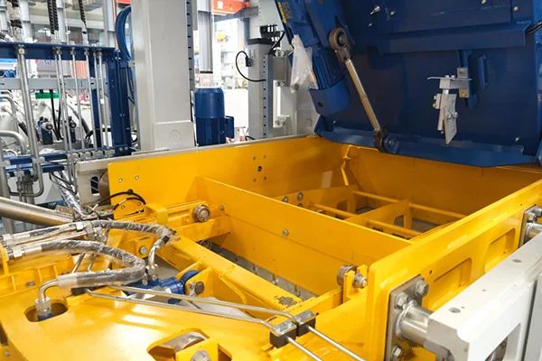 Déantar an nasc idir an príomh-mheaisín agus an t-aonad meascán aghaidh den ZN1200-2C a bhaint amach trí chóras glasála uathoibríoch hiodrálach chun cinn. Tiomáineann sorcóirí hiodrálacha na comhpháirteanna glasála chun an t-aonad meascáin aghaidh a dhaingniú go docht chuig an bpríomh-mheaisín. Nuair is gá an t-aonad meascáin aghaidh a scaradh, scaoileann an córas an glas, agus tiomáineann mótar giaráilte an t-aonad meascáin aghaidh chun bogadh ar feadh a ráillí.